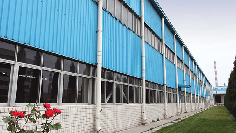 太倉工廠于2001年開始建設(shè)。采用寶鋼鍍鋅彩涂鋼板,涂層種類PE,顏色為海藍,牌號為TSt01,鍍層重量180克/平方米。2011年檢測,外墻面涂層厚度20.5微米。