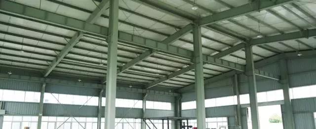 ▼彩鋼瓦屋頂廠房內部結構。