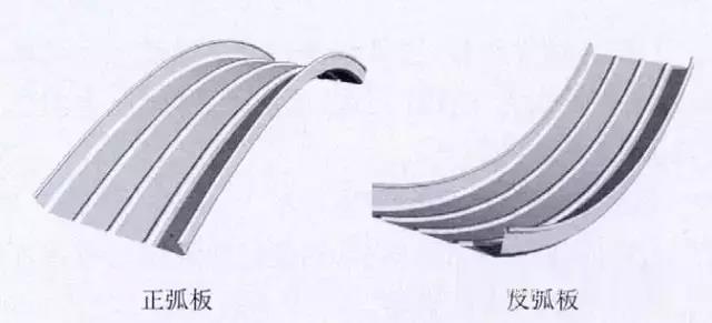2)正、反弧板:適用于半徑小于自然成弧半徑的單曲屋面;